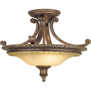FE/STIRLINGCASSF Stirling Castle Semi Flush Ceiling Light in British Bronze FEATURES * British Bronze finish * Medieval Gothic inspired design * Ornate soft gold glass shade * Curved frame * Semi flush fitting * 2 Lights SIZE * Diameter 476mm * Height 362mm BULBS * Takes 2 x 60watt E27 (not included) ORDER CODE * FE/STIRLINGCASSF