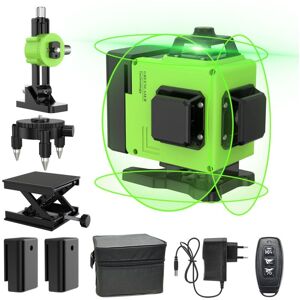 【4 x 360° Laser Levels】Two 360° horizontal planes and two 360° vertical planes can cover all positions around the room, such as floors, walls, ceilings, stairs, etc. Two vertical lines intersect at a 90° angle, allowing users to quickly visualize and complete a square layout. 【Green Line Laser Accuracy ±1.5mm】The green laser beam is 2 times brighter than the red laser, more stable and consumes less power. Red visibility has a maximum operating range of 30m. 【Self-leveling and manual mode】The cross line laser automatically levels to +/- 3°, or can be set to manual mode to project diagonal lines. [Accessories] Wall bracket*1, wall iron sheet*1, lifting frame*1, remote control*1, manual*1, charger*1, lithium battery*2, cup holder*1, plastic bag*1. 【Multiple installation methods】❶The iron plate of the rear bracket has strong suction and is more stable when installed on the iron rod. It comes with an iron plate. ❷ Installed on the lifting platform to measure walls. ❸ This laser rod can be