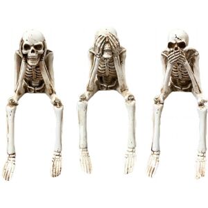 [ SHAPE] Halloween party decorations have a total of three poses, do not listen, do not look, do not say, three models are very and novel, like full of worry,It can create a scary atmosphere. [HIGH QUALITY MATERIAL] The skeleton decoration is made of high-quality resin materials, delicate texture, vivid and interesting image, scary and realistic, , very strong, not easily damage and fade [PURPOSE] Halloween decorations, perfect home decoration, can be placed on the table, bedroom, office and other places, your friends, family and colleagues be very admire your vision [MOVABLE JOINTS] The skeleton decorated knee joint is made into a flexible design that can be moved and bent, which is convenient for placing shapes.After a long time, it can be changed into a different position, and it is a different shape [CREEPY PROP] This prop is perfect for events or parties. It can be used to decorate Halloween parties, haunted houses or bars. Usually can also be placed in the home bedroom desk, is