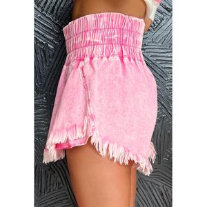 Our styles are designed with a trendy fitted look in mind following an international size standard. For the best fit we suggest choosing one size up from your usual. Be sure to check our sizing chart to find your perfect match! Pink washed wide smocked waistband frayed denim shorts Combines the look of a skirt with the practicality of shorts Smocked waistband provides a comfortable and flexible fit Frayed hem adds a trendy and casual touch Washed denim fabric for a laid back and vintage feel Material: 98% Cotton 2% Elastane