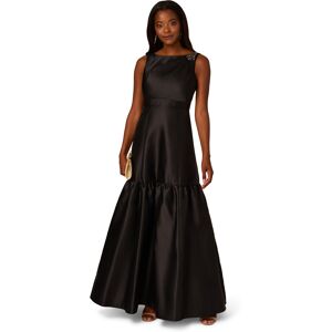 With details this luxurious, you will feel like royalty in this sleeveless ball gown. This formal dress features a sleeveless bodice, boat neckline, and a soft skirt with flounce hem. Designed with shining mikado fabric, this classic evening gown is pleated at the shoulder and accented with stunning stone trim. A hidden zipper closure at the centre back completes this black-tie dress. From charity balls to weddings, this sleeveless mikado gown will shine with a simple clutch and neutral heels.