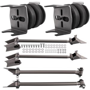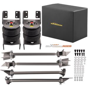 Important!!! The connecting rods will be randomly shipped in black or silver, please refer to the product actually received. Application for Universal Rear Weld-On Triangulated 4 Link Suspension Kit with Two 2500 Air spring Bags & Rear Air spring Bag Mounts; for Most Pickup Trucks, Hotrod, Ratrod or Classic Car with 2.75" Axle Tube; for Ford F150/F250; for Ford pickup truck 1948; for Ford Ranger 1991; for GMC Sierra; for Chevrolet Silverado; for Jeep Cherokee XJ; for Jeep CJ-7 4WD; for Jeep Wrangler TJ 1997; for Dodge Ram 1500 2500 3500, etc; Package Includes 4 x Heavy Duty Steel Bars 4 x Zinc Plated Steel Rod Ends W/ Urethane Bushings 2 x Steel, Weld-On Triangulated Frame Mounts 2 x Steel, Weld-On Lower Axle Tube Mounts 4 x Steel, Weld-On Center Link Axle Mounts 2 x Steel, Weld-On Side Frame Mounts 8 x Button Head Bolts with Nyloc Nuts 2 x Weld-On Lower Axle Bag Mount 2 x Weld-On Upper Frame Bag Mount 2 x Standard 2500 Single 1/2"npt Port Air Spring Bags 4 Link Bar Dimensions Tubing