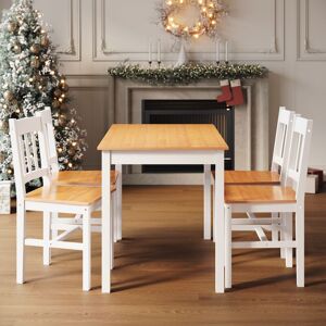 ELEGANT Solid Wooden Dining Table and 2 Chairs ELEGANT wooden dining table and chairs sets designed with simple and streamlined style,prime solid pine wood,which allows sets to stronger stability,Following human ergonomic design of comfortable back chairs,durable and long-lasting,These dining sets are equally in the kitchen,living room,restaurant,office lounge dining kitchen,valued for money. Features: ⭐【 Solid Pine Wood 】 - Contructed with Solid Pine Wood Materials, hard texture for long-life use ⭐【 Coat of Painting 】 - Top Surface finished with a clear lacquer, Moisture resistance and easy to clean. ⭐【 Waterproof Ensurance 】 - Waterproof Resistant, Scratch-Proof and Easy to matin and keep. ⭐【 Fix Devices 】 - 4 corners of the table come with fixing devices, ensuring your table stable as usual, long life to use. ⭐【 Ergonomical Design 】 - Slatted back dining chairs design is ergonomically correct for the people as well as comfortable. ⭐【 Load Capacity 】 - Strong load-bearing capacity