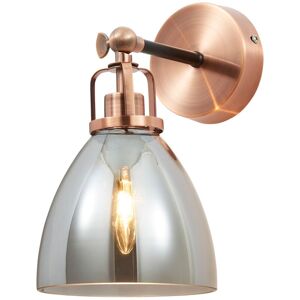 The Indy 1 Arm Wall Light with Smoke Shade is where industrial edge meets contemporary style. This wall lamp features a smoke-tint glass shade that softens the glow. The copper finish will bring warm tones to your living spaces, perfect for lounges, bedrooms and hallways. Product Type: Wall Light Bulbs Required: 1 (Not Included) Bulb Type: E14 Small Edison Screw Max Bulb Wattage: 6 Watt Max Bulb Voltage: 240 Volt Light Source: LED Height: 25 cm approx. Width: 14.5 cm approx. Projection: 19 cm approx. Material: Metal, Glass Colour: Copper, Smoke Tinted Technical Information Weight: 0.6 kg