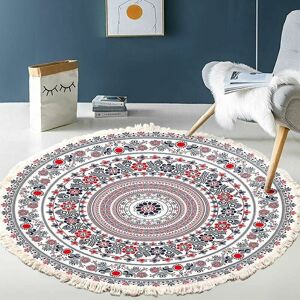 Hand woven bohemian rug (tight weave) - Strong water absorption - Good breathability and durability This chic bohemian style rug is designed with floral mandala print unique and colorful design, with pretty pompoms on the edges. Lively and unique, it will add elegance to your interior Perfect furnishing textile for bedroom, living room, children's room, playroom, kitchen, entryway, laundry room, office, reading corner, nursery class, etc. Round mandala rugs are also great as quilts, play mats, play mats. yoga, picnic mat, kitchen mat, meditation mat, etc. It's nice to be barefoot on it Easy care, machine washable, do not bleach. Avoid soaking it for a long time. Do not use a brush for cleaning, do not scrub. Dry flat in a cool place. Can be folded for storage when not in use