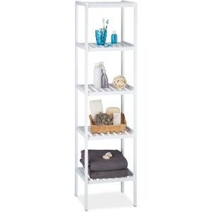 With this freestanding bamboo rack, you can finally organise your bathroom, kitchen or hallway. The 5 shelves provide ample space for towels, books, shoes, etc. The bookcase is perfect for small spaces thanks to its compact size. The bathroom storage unit is a truly eye-catching piece. The open shelves allow you to quickly grab your towels, cosmetics and other bathroom supplies. Details on the Bamboo Bath Rack with 5 Shelves • Total size: HxWxD: ca 139.5 x 34.5 x 33 cm • Size per compartment: 31.5 x 31.5 cm • Distance between shelves: ca 27.5 cm • Distance to floor: ca 17.5 cm • With 5 shelves (maximum capacity per shelf: 5 kg) • Made entirely out of bamboo • Weight: ca 4.3 kg • 2x Bath rack in pieces Shelving Unit for the Bathroom, Kitchen, etc. • For the bathroom, kitchen, basement, pantry, etc. • Store your bathroom supplies, towels, kitchen utensils, etc. • Ample storage space with a compact size • Secure and sturdy stand • White top surface matches any surroundings Bamboo