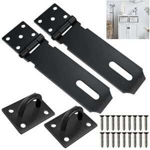 HIGH QUALITY 304 STAINLESS STEEL: The safety buckle is made of sturdy 304 stainless steel, durable, clean, burr-free, resistant to rust, corrosion, wear and has a long service life. Dimensions: The latch size is 125 mm (L) x 33 mm (W) x 39 mm (H) and the mounting hole diameter is 5 mm. Ideal for securing all types of doors, sheds, cabinets, drawers, cabinets, containers and suitcases. The padlock hook is easy to install, just use the mounting screws provided. The thickened design increases protection at home and in the office. Elegant and refined design: The lock is fully polished, simple and refined. A matte black finish looks better and is perfect for a modern home MULTI-FUNCTIONAL: 2 security latches with 18 screws, door latches are perfect for front doors, garage doors, wooden boxes, cabinets, windows, drawers, cupboards, etc.