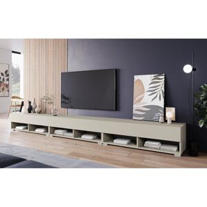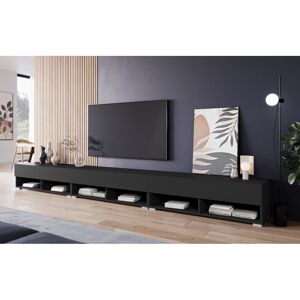 TV Cabinet Bonni cm A long cabinet that will help you neatly organize the space under your TV and provide ample storage for functionality. Its simple, minimalist design will perfectly match any interior. Made from high-quality 15 mm laminated board in a Matera color, with front panels in Wrocławian chestnut. The back wall of the furniture is in anthracite. Visible edges and fronts are finished with ABS edging, while the remaining edges are covered with paper edging in the color of the board. Plastic feet are painted in silver. This model is handleless and opens with fronts that extend beyond the body. The TV cabinet offers convenient storage in compartments hidden behind doors that open from top to bottom in a lift-up system. A dedicated space discreetly hides a decoder, console, or simple audio equipment, allowing for an organized and aesthetically pleasing cable management. Depending on your preference, it can be wall-mounted or placed on silver-colored legs. Latitude Run Colour: Matte Black/Brown