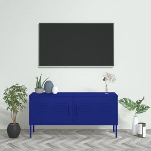 This TV cabinet, featuring its practical design and simple lines, is an excellent choice for your living space. The steel construction of this TV unit makes it highly sturdy and durable. There are levelers on the bottom to adjust the height according to your needs. The TV stand has 2 mesh doors with a shelf inside, providing ample storage space for DVDs, magazines and other essentials. Additionally, there are 4 holes on the back panel to organise the cables of media and electronic devices. It is also easy to clean with a damp cloth. Colour: Navy blue Material: Steel Dimensions: 105 x 35 x 50 cm (W x D x H) 2 mesh doors 1 shelf (not adjustable) With levelers on the bottom With holes on the back panel Loading capacity per shelf: 50 kg Total loading capacity: 100 kg Assembly required: Yes WARNING: In order to prevent overturning, this product must be used with the wall attachment device provided. Legal Documents: More details about preventing your furniture from tipping over can be found