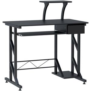 " This stylish computer desk is constructed of quality steel and MDF for daily years of use. It has a compact design to use the smallest amount of space, so great for small rooms. Comes with a large workspace, a sliding keyboard tray, a movable elevated shelf, a drawer and a CPU stand for your monitor and daily work items. Equipped with anti-slip feet to make your desk more stable and secure. This modern home office desk is ideal for both home and office. Specifications: • Material: Steel, MDF • Colour: Black • Weight Capacity: 100kg • Overall Dimension: 90L x 50W x 100Hcm • Sound Shelf: 34L x 23W x 24Hcm • Drawer Panel: 21.5W x 10Hcm • Internal Dimension: 16W x 29.5D x 8Hcm • Keyboard Shelf Size: 55.5L x 23.5Wcm • Host Shelf Size: 34L x 23Wcm • Custom Label: 920-018BK Features: • Heavy-duty steel and MDF board material in hard wearing and durable construction • Space saving and practical furniture suitable for office, home, dorm room and so on • Drawer is helpful for storage of