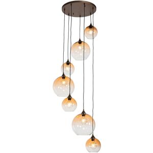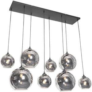QAZQA Art Deco Pendant Light Black with Smoke Glass 7-Light - Laura Video Make a statement in your interior with Laura! This pendant light is a must-have for an Art Deco interior, with a round black mounting plate that supports 7 height-adjustable light points. The lamp is made of strong steel and is characterized by vertical shades of ribbed smoke glass that add a stylish touch. With an impressive diameter of 50 cm and a maximum height of 161 cm, Laura offers a unique lighting solution. Don't forget to order E27 light sources to complete this striking lamp. Laura will make your interior shine with its timeless design and impressive size. Bulb holder: E27 . Max 7 x 40 W, 230 V Suitable for: LED Connecting voltage: 220V/230V Protection class: IP20 Dimmable, dimmer not included,No, without cord and plug Lightsource: Exclusive The QAZQA Art Deco Pendant Light Black with Smoke Glass 7-Light - Laura is Grey. Suitable living spaces for this lamp are: Indoor lights, Dining room, Hall way,