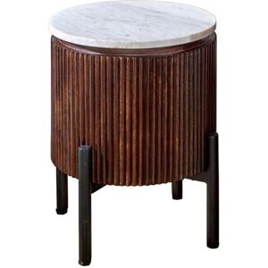 Mango wood side table with real white marble top & metal legs. Made from 100% mango wood and natural marble. This eye-catching side table is perfect to hold your drink whilst watching tv, along with the remotes and your mobile phone so everything is to hand. The elegant marble top will stand the test of time and the Artwork fluted wood surround compliments it perfectly. Sturdy metal legs complete the look of this item which is completely handmade by our skilled craftsmen in India using eco friendly materials. Made from 100% mango wood and natural marble. Features: Minimal Assembly Required Lacquered Finish Mango Wood Handcrafted Easy to Clean & Maintain Dimensions & Weight: Dimension: L35 x W35 x H45 cm Weight: 12 Kg . Mango wood side table with real white marble top & metal legs. Made from 100% mango wood and natural marble. . Delivery is Free to UK Mainland excluding the following postcodes where a surcharge may apply:- AB, DD, IV 1-28, 30-32, 36, 40-49, 52-56, 63, KW 1-3, 5-14, PA