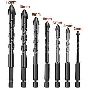 Sharp cutting edge without chatter. Staggered cutting teeth ensure smooth and clean drilled holes. Style: 3mm, 4mm, 5mm, 6mm, 8mm, 10mm, 12mm Material: Carbide Compatible equipment: Lithium electric drill, hand drill, bench drill Specification: Color: Black USES: Glass ceramics, vitrified tiles, ceramic tiles, brick walls, wood, plastics Compatible equipment: Lithium electric drill, hand drill, bench drill Features: U-shaped drill design, screw handles increase cutting speed and prevent slippage. They also remove flakes and debris easily, providing you with clean and smooth. The surface is coated with electrophoretic paint to prevent the bit from rusting. The hexagonal handle is designed to prevent slippage. Widely used, it can easily penetrate various materials such as tiles, glass, hard plastic, Cement concrete, travertine, brick walls, wood and can reduce cracking.
