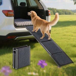 As your pet gets older, they may struggle with mobility – simple tasks become difficult. With this PawHut dog ramp, getting in and out of cars is much easier, so they can still enjoy rides. Made from durable plastic, it keeps its shape. The ramp is foldable, so it can be placed into the boot and save space. Just because our dogs are older or struggle with mobility, doesn't mean they cannot enjoy simple things – this ramp makes sure of this. Specifications: ● Colour: Black ● Material: PP ● Dimensions: 14H x 155L x 39Wcm. Folded: 20H x 79L x 39Wcm ● Weight capacity: 75kg ● Item label: D06-153V00BK Features: ● Made with sturdy plastic frame, keeping it strong and secure ● Suitable for cars with a boot height below 75cm from the ground ● Foldable for easy storage ● Maximum load 75kg