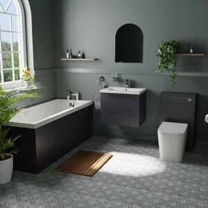 Model Number: WDB91287 Step into luxury every morning with the Stockwell 1700mm Straight Single Ended Bathroom Suite including Deep Blue Furniture Set with Polished Chrome Handles. Featuring a wall mounted vanity unit, with 2 spacious soft closing drawers, a striking white basin with 1 tap hole, a back to wall toilet unit with soft closing seat, and a luxurious 1700mm bathtub. All complete with a matching deep blue bath panel. This complete bathroom suite makes revolutionising your bathroom simple as everything comes pre-assembled. Simply install, select your favourite taps, and enjoy. Crafted from strong MDF materials, this moisture resistant suite is perfect for busy bathrooms. Order your Stockwell Deep Blue Bathroom Suite today and indulge in our free delivery on orders over £500! Key features Complete bathroom suite for modern interiors Includes deep blue vanity unit with soft-closing drawers and polished chrome handles Bath comes as standard without pre-drilled tap holes Supplied