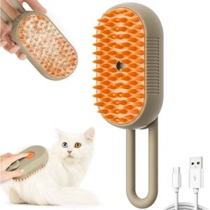 GENTLE PET CARE: This Cat Steam Brush is designed for furry pets such as cats and dogs, with small rounded rubber tips at the end to effectively remove hair without causing discomfort or irritation to furry pets. DURABLE MATERIAL: The Cat Steam Brush is made of high-quality ABS, durable enough to withstand daily wear and tear; it comes with a new 360-degree swivel handle. The handle swivels and folds to save space when not in use, providing a more convenient experience for pet owners. STEAM TECHNOLOGY: This pet brush uses unique hot steam technology to loosen and remove dirt and grime that builds up on the hair. Hot steam is very safe and gently cleans your pet's coat to keep it healthy. COMFORTABLE HANDLE: The Dog Steam Brush is designed to make cleaning and hygiene easier. The brush head is detachable and easy to grip, and the handle is ergonomically designed to fit comfortably in your hand. MULTIFUNCTIONAL USE: With the 3 in 1 Dog and Cat Steam Brush, you can clean furry pets: