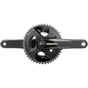 The SRAM Force Wide Crankset 1x AXS D2 Road Power Meter Spindle DUB is the best of both worlds. The longer DUB crank ensures that wider tires can be used. A light and stiff direct mount chainring with accurate Quarq power measurement is elegantly hidden in the DUB spindle.This unseen collects the data you need to make progress, the crankset is only 40 grams heavier than a crankset without a power meter.The power meter has a long-lasting battery life of 400+ hours and is IPX7 waterproof (1 meter under water for 30 minutes).The crankset is made of carbon fiber which makes it very light, stiff and strong and also looks stylish.Features:- X-range technology gives you more range and smoother power transmission- DUB-PWR spindle measures the left side to calculate total watts- Proven Quarq reliability and precision- Waterproof up to 1 meter for 30 minutes- Long battery life, up to 400 hoursSpecifications:- Battery Replaceable: Yes- Battery Status: Yes- Wireless: Yes- Crank arm material: Carbon- Number of Arms Spider: 4- Crank Lengths: 170mm- Battery Life (Hours): 400- Type of Battery 1: 2x AAA Battery- Tools Needed: Yes- Includes Battery: Yes- Product Uses Battery or Accumulator: Battery- BCD: Direct Mount- Bottom Bracket Type: All SRAM Road DUB BBs- Including Sprockets: Yes- Use Product: Gravel, Road Bike- Number of Sprockets: 2- Single or L/R Crank: set- Recommended Groupset: SRAM Force eTap- Suitable Groupsets: SRAM Force, SRAM Force eTap, SRAM Red eTap- Number of Speed: 12- Electronic Shifting: Yes- Suitable Type of Bikes: Gravel Bike, Road Bike- Teeth: 43-30T