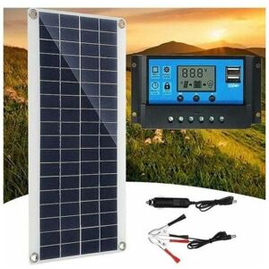-High Conversion Efficiency - 300W solar panel with high quality panel, power conversion efficiency up to 23%. Good light transmittance, the more sunlight you get, the higher the charging efficiency. -Plug and play: Reserved holes for solar panel kit allow for quick installation and fixing, solar panels can be installed on uneven surfaces, very easy to install, carry and hang. -Waterproof design: the solar panel solar cells have a waterproof design, prevent short circuit or rain damage, can withstand different environments, and are suitable for outdoor and indoor use. -Wide application: the solar panel solar cell is suitable for outdoor and indoor use, very suitable for caravans, boats, batteries, homes, caravans, gardens, outdoors. It can generate power in most weather conditions. -What You Get: 1 x 300W solar module, 1 charge controller, 1 clip cable, 1 car charger, 4 suction cups, this solar set is very suitable for outdoor life. Note: The data are all manual measurement , please