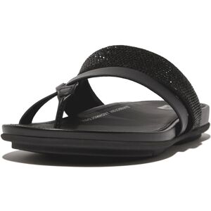 Elevate your casual summer style with the FITFLOP Gracie Crystal Leather Strappy Toe-Post Slides in black. These women's shoes are a glamorous take on the classic flip flop, featuring a sleek leather upper with crystal embellishments for a touch of sparkle. The strappy design adds a trendy touch, while the toe-post construction ensures a secure and comfortable fit. The signature Microwobbleboard midsole technology provides all-day comfort and support, making these slides perfect for all-day wear. Whether you're heading to the beach or running errands around town, the FITFLOP Gracie Crystal Leather Strappy Toe-Post Slides are a stylish and practical choice for summer.