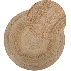 Natural Flat Weave Boho Rug. Showcasing natural, raw vibe, this area rug is set to introduce a warm atmosphere to your surroundings. It's a perfect example of a simple style that works great combined with Scandinavian or minimalist decor scheme. Made with eco-friendly jute, enhanced by durable synthetic material, it is suitable for allergy sufferers. Thanks to its overall appeal and easy maintenance, it goes well with a kitchen or dining area. Details: Product Type: Flat Woven Style: Boho General Color: Beige Material Type: Fabric Main Material: Jute Additional Material: Synthetic Material Shape: Round Anti-Slip Bottom: No GSM: 2200 g/m2 Pattern: Solid Suitable for Underfloor Heating: No Weaving: Machine Woven Dimensions: Pile Height: 0.6 cm Width: 140 cm Length: 140 cm Weight: 3 kg Offer Includes: 1 x Rug Key Features: Timeless Design, Adds a Homely Touch to Any Room, Works Great with Many Interior Styles, Exceptionally Low-Maintenance, Natural Material Assembly Information: Does Not