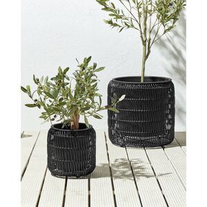 If you wish to add an extra touch to your plants, place them in this set of two round plant pots. Boasting a contemporary braided look and an openwork structure, they are crafted from resilient PE rattan. Each piece comes complete with a fitting plastic pot, ready for planting your flowers. Whether for your home or terrace, these pots will enhance the decor with a natural feel. 17 Stories Colour: Black