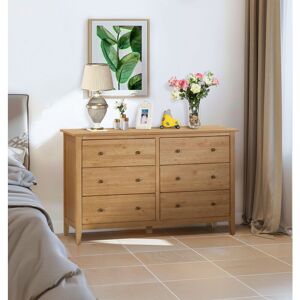 This versatile chest of drawers consists of 6 drawers, ideal for small spaces requiring extra storage, this piece can be used in any room – whilst ideal for bedrooms, consider using this storage unit as a hobby supply organiser, or as an additional storage unit in a living or dining room. Crafted from solid oak and finished with a coating of natural lacquer, this is a durable, long-lasting piece which will be a part of your household for years to come. Suitable for use in any room, this piece is versatile and features a sturdy top surface which can be used as a display area or as additional storage space. Features Finished in a natural lacquer to enhance protection and the wood's natural colouring. Ideal for bedrooms, hallways, and dining rooms. Crafted from solid oak and featuring real oak veneer panels. Features 6 drawers for versatility and additional storage. Assembly: Not Required Material: Rubberwood with Oak Veneer Finish: Lacquered Colour: Oak Height: 78cm Width: 125cm Length: