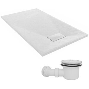 ELEGANT White Slate Effect Lightweight Slate Shower Base Size: 1200x700x30mm,Extra flat,Surface or recessed installation. Lightweight slate,heat resistance,corrosion and wear resistance (SMC composites). Made from a patented SMC blend with a slate textured finish,slip resistant,fire resistant and corrosion resistant. Special hidden centre waste design,Matches shower tray covering and long lasting to prevent stains. Back of the tray has a net design framework supporting structure,for better weight endurance and durability. Waste is included,size:Ø90mm.materail:ABS. Kit Content : Shower Tray free 90mm waste trap Stainless steel drain cover