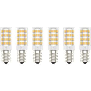 If the bulb does not light up, please lift the power contact from the lamp holder when the power is off. Because the power contact of the lamp holder may flatten with long-term use. These E14 LED bulbs are NOT dimmable and do not flicker. A stable and reliable light source can prevent visual fatigue and protect the eyesight of you and your family. High brightness (300 lumens), low power consumption (energy class A+), beam angle 360°, highly transparent PC lampshade These 5 watt LED bulbs can be used as a replacement for 50 watt incandescent bulbs and save up to 90% electricity. The lamps with high color rendering index (CRI>80) can more accurately reproduce the true color of objects and provide a vivid visual enjoyment. High energy efficient 2835 SMD LED chips, ceramic cooling base and high quality PC lampshade ensure durability. The service life can be more than 30,000 hours. Suitable for indoor lighting such as chandeliers, ceiling lights, ceiling fan lights, wall lights, desk