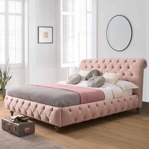 This bed frame, lovingly made by hand, is upholstered in robust, smooth, and practical fabric. It takes its inspiration from chesterfield inspired design but with trendy upholstery. This bed frame is the perfect statement piece that combines matching fabric button detailing with a scroll headboard and low footboard design. It also comes with wooden feet. FunkyBedz Colour: Black Crush Velvet, Size: Super King (6')