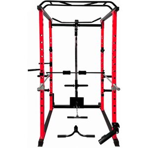Train your entire body with the versatile P2I power rack.This rack is equipped with a lat pulley including pull down bar and straight bar, a double pull up bar with vertical connectors, adjustable safety rods, a T-bar with landmine handle, dip bars, 2x J-hooks, weight plate holders and stretch bar.Packed in 2 boxes.