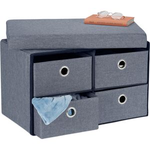 This folding bench combines storage and seating in one and truly is an all-rounder for the living room, bedroom, hallway or dressing room. With its 4 drawers, the fabric chest offers practical storage space for items of clothing such as scarves, hats, gloves, and even toys can be stored wonderfully. The padded lid adds extra comfort to the seating. When not in use, the bench can be quickly folded up and stowed away. Storage Bench in Detail - Overall dimensions H x W x D: approx. 39 x 60 x 38 cm - Drawers outside H x W x D: approx. 15 x 28 x 34 cm - Drawers inside H x W x D: approx. 13.5 x 27.5 x 33 cm - Max. load capacity: 200 kg - Weight: approx. 8.2 kg - Material: MDF, polyester, foam - Colour: Cream Storage Bench with Drawers - Practical for dressing rooms, bedrooms, hallways etc. - Offers storage space for clothes, toys, and more - 4 drawers provide order and help to organise your things - With padded lid for extra comfort - Sleek style fits in every living area - Simply fold and