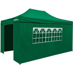 This spacious 3 x 4.5m gazebo provides 13.5 square meters of shade and features a heavy-duty, weatherproof, powder-coated steel frame. Up to twelve people, four tables and more will easily fit under the canopy. Ideal for any outdoor event, from barbeques and garden parties to sporting events and shows, even practical as a makeshift shed, the list is endless. The frame is made of heavy-duty 30 x 25 mm rust-resistant steel tubes and the canopy cover is made of 260g/m PVC coated waterproof Oxford fabric, which has been UV treated making these suitable for both sunny and rainy days. We use higher-grade steel than many competitors and our gazebo also has built-in support struts to protect against wind. Convenient to assemble or disassemble in only five minutes with no tools required and comes with a travel bag. Supplied with 4 x guide ropes, 4 x pegs/stakes, 4 x weight bags suitable for use with sand, and 1 x carry bag. Available in four canopy colours: Beige, Blue, Dark Green & Grey. Colours may vary slightly due to lighting conditions. The 420D thick sides comprise of 2 window sides and 2 door sides. Do not let naked flames or unprotected heat sources come into contact or close to the fabric. Size: 3 x 4.5m (10 x 15ft). Dellonda Roof Colour: Dark Green