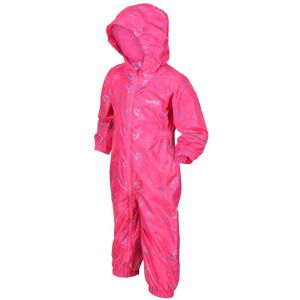 The Pobble from Regatta. The all-in-one suit features a water-repellent finish to protect from rainfall and muddy puddles. It's breathable too so nothing will get in the way of mini adventures. The print is perfect for brightening up rainy days outdoors. Material: 100% Polyester. Ref: RKW241HXD.