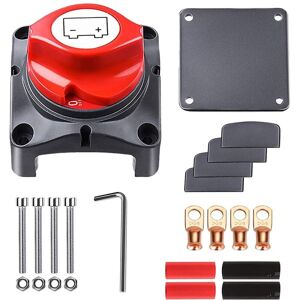 HEAVY DUTY & FULLY ENCLOSED KILL SWITCH: The heavy duty kill switch is made of ABS plastic housing and tinned copper inner stud. Fully enclosed to protect wiring from dirt, corrosion and rain. Best choice in harsh ocean conditions. COMPATIBILITY & SAFETY: Battery kill switch used for DC 12 - 48V systems to isolate and secure the electrical system; Eliminate all power draw from the battery when the vehicle is not in use, safely disconnects the battery; Provide a reliable way to cut off power during maintenance and protect batteries from over-discharge. EASY TO USE: 2 on/off position, suitable for various 12V/24V/48V systems. Current Voltage: Rated at 300A continuous (1 hour) at 48V DC and 1000A for 5 seconds. Clockwise to turn on, counterclockwise to turn off. WIDE APPLICATION: The battery isolator switch is universal for RV, boat, car, marine, camper, caravan, truck, UTV battery and other engine applications, which makes it an effortless job to turn the battery on and off. : Fully