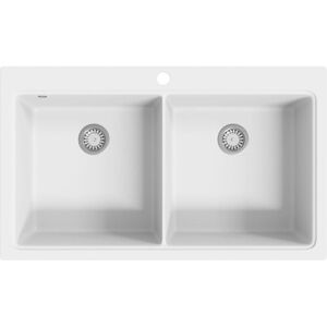 vidaXL Granite Kitchen Sink Double Basins White