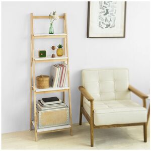Practical 4 tiers folding storage shelf, ideal for living room, bathroom, office, bedroom, studio, etc. A ladder design for a stable furthermore eye-catching look. Foldable, easy to store away. No assembly required. Ready to use. Product Details Material/Finish: Frame: rubber wood with varnished coating. Shelves: MDF in white. Product Dimensions: W42 x D34 x H140cm. Folding Dimensions: W42 x D6 x H144cm. Weight: 7.6kg Load Capacity: 15kg/tier. The decorative elements are not included in the delivery.
