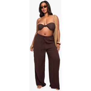 Distinctive crinkle texture beach trousers with eye-catching pearl embellishments Wide-leg silhouette for effortless movement and comfort Adjustable drawstring with decorative beaded ends for a secure fit Lightweight, flowing fabric perfect for warm-weather destinations Inclusive plus sizing designed to flatter and complement fuller figures Make a statement on your next beach holiday with these beautifully crafted wide-leg beach trousers. The distinctive crinkle texture adds visual interest whilst the pearl embellishments bring a touch of subtle glamour to your beachwear collection. Style with a bandeau bikini top as shown for poolside lounging, or pair with a loose linen shirt for beachfront dining. The relaxed wide-leg design ensures all-day comfort whether you're strolling along the shoreline or enjoying cocktails at sunset. These versatile trousers transition seamlessly from daytime beach wear to evening resort attire when accessorised with statement jewellery and metallic sandals. Complete your look with a woven beach bag and oversized sunglasses for the ultimate holiday ensemble that combines comfort with Boohoo's signature trend-focused style.