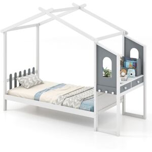 Customized kids house bed enhances amusing touch DIY the bed with decorations (not included) for a unique look Montessori develop independence and explore surroundings Perfect for girls and boys to make up their own themed bedroom 10 reliable plywood slats and solid wood frame serve for a long time High guardrails give kids a safe and comfortable sleep experience The low to ground height is convenient for kids to get in and out of the bed 2 shelves provide convenient storage for books, toys, etc. No additional box spring or foundation is required Chic style and elegant appearance fit any room style This child-friendly Montessori floor bed will surely grab kid’s attention and entertain them a lot! Featuring unique house-shaped design, the floor bed adds a touch of whimsy and imagination to any room. More, solid wood construction can withstand the energetic playtime of your child and is built to last for years to come. The guardrail prevents your child from rolling out of bed, giving