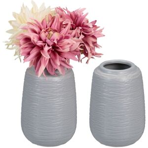 Relaxdays set of 10 vases, textured, vintage design, glass, H: 10–14.7 cm, small decorative table vases, transparent