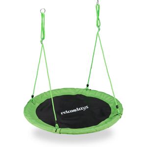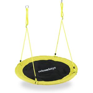 With this round swing you are perfectly equipped for the warmer seasons. Using the 2 robust ropes, you can conveniently hang it from a tree or separate frame and even adjust it in height. Just make sure to leave sufficient space around the swing so your kid can enjoy an unforgettable experience. But you can of course also get comfortable yourself due to the padded metal frame. No matter whether it’s the garden or a big room in your home - This swing guarantees fun and relaxation for the whole family. Please note: For additional comfort and sunlight + insect protection, you can attach a tent to the swing. Suitable Relaxdays moels are 10026656 or 10026657 for the 110 cm option. 110 cm Nest Swing Details - Swing H x D: app. 5 x 110 cm - Adjustable height: app. 85 - 150 cm - Capacity: app. 100 kg - Weight: app. 3 kg - Material: Fabric, PE, PP, steel, foam - Various colours available Safety Instructions - For kids ages 3 and up - Kids should not be left unsupervised - Place above soft