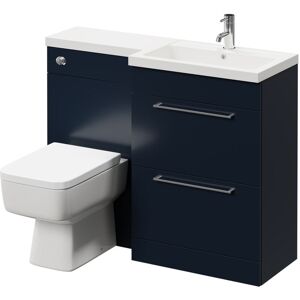 Model Number: WDB92738 If neutral bathroom interiors aren't for you then you will love our Napoli 390 Combination Deep Blue 1100mm Vanity Unit Toilet Suite with Right Hand L Shaped 1 Tap Hole Basin and 2 Drawers with Polished Chrome Handles. This suite boasts a vanity unit with 2 large drawers, a back to wall toilet with matching unit, a soft closing toilet seat, and a striking white basin countertop. All of these elements are constructed seamlessly to provide you with everything you need for your bathroom. The matt deep blue finish is tantalising to the senses yet soothing to the space. Demanding attention, this unit is an alluring centrepiece for any bathroom. With the polymarble basin designed with a pre-drilled tap hole, you can select your own taps for the perfect bathroom furniture. Order your Napoli Deep Blue Vanity Unit Toilet Suite and bask in our free delivery on orders over £500! Key features Two soft-closing drawers with elegant handles Basin comes with one pre-drilled tap