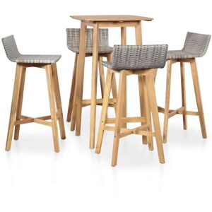 This stylish garden bar set provides you with a leisurely and comfortable time with your family and friends. The bar table is supported by a powder-coated steel frame, making it stable and sturdy. The tabletop is ideal for placing drinks, food, or some decorative items. The stools have a strong construction of steel frame and are made of weather-resistant PE rattan, ensuring stability and are easy to move. The footrest also add additional seating comfort for the stool. Colour: Grey Material: PE rattan, powder-coated steel Table dimensions: 100 x 60.5 x 110.5 cm (L x W x H) Chair dimensions: 52 x 56 x 118 cm (L x W x H) Delivery contains: 1 x Bar table 4 x Bar stool
