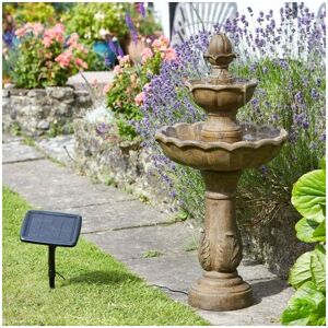 Smart Garden Solar Kingsbury 3 Tier Garden Water Feature Fountain Relax in your garden listening to the water gentle trickling over this beautifully designed water feature. This fountain couldn't be easier to install. No need to worry about the cost and complications of mains wiring as the solar panel will do all the work. Simply place the fountain in a sunny spot, fill with water and away you go. The high quality resin construction is UV and frost resistant, helping it better withstand the elements. Stone effect finish on this 3 tier traditional fountain design.