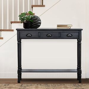 A narrow table is an essential item for keeping your home organized, whether it’s for storing keys, books, spare change, or even the post, a small hallway table will keep your home feeling fresh and tidy. This wood entrance table is chic and functional making it the perfect narrow side table to greet you as you enter your home. Three drawers and an external lower shelf provide plenty of storage space. On the lower shelf, you can place shoes or handbags. Also, the surface is ideal for displaying flowers, houseplants, or photos. Three Posts Size: 81 H x 100 W x 24 D cm, Colour: Grey