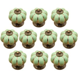 Package Content: 10pcs Ceramic Pumpkin Knobs, Zinc Alloy, 10pcs Screws Modeling: Beautiful shape, compact, durable, vintage and practical, beautiful pumpkin shape has European style. Size: (LxH)4.1 x 4.1cm, Knob Hold Dia: Approx.5mm; Base Dia: Approx.2.8cm. Screw Length: Approx.2.5cm. Compatible: For cabinets, drawers, chests, wardrobes, kitchen, bedroom and bathroom furniture doors and all your DIY ideas.