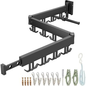 The wall-mounted laundry rack made of rustproof aluminium is ideal for the bathroom and balcony. Three flexible segments, each with four rotating hooks, offer plenty of options for hanging clothes. A fixed clothes rail, an extendable sock rail with 6 clips, 2 foldable hangers and 1 shoe holder complete the accessories of this wall-mounted airer. Thanks to its folding function and flexible installation with drilling or adhesive, this space-saving wall-mounted laundry rack is perfect for small rooms. Wall-Mounted Laundry Drying Rack in Detail - Dimensions H x W x D: approx. 12 x 127 x 26 cm - Folded H x W x D: approx. 12 x 45 x 8 cm - Dimensions of individual segment H x W x D: approx. 4 x 30 x 2 cm - Dimensions of clothes rail W x D: 26 x 1.5 cm - Load capacity when glued: approx. 8 kg - Load capacity with screw mounting: approx. 50 kg - Material: Aluminium, plastic, stainless steel - Available in various colours Folding Wall-Mounted Clothes Airer - For bathrooms or balconies thanks to