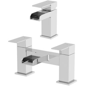 GENERAL DESCRIPTION The Aquari Dakota range of bathroom taps features strong angular lines and smooth surfaces, making a great impact on any contemporary bathroom. This set is a fantastic solution for all your bathroom tap needs. Features and Benefits: Open top waterfall spouts provide a cascade of water. The polished chrome finish complements any bathroom style. Easy to use taps with twin levers on the bath tap and a single lever on the basin tap. Solid brass build for durability and longevity. Reliable ceramic cartridge for long-lasting performance and smoother quarter-turn action. Pair with other Dakota Waterfall Taps. Flexible tails included for the basin tap only. 5-year guarantee for peace of mind. TECHNICAL SPECIFICATIONS Bath tap flow rates (l/min): 0.5 bar – 31.5 / 1.0 bar – 43.2 / 3.0 bar – 70.3 Basin tap flow rates (l/min): 0.5 bar – 8.7 / 1.0 bar – 12.3 / 3.0 bar – 21.1 Bath tap dimensions: 229mm (W) x 126mm (H) x 130mm (D) Basin tap dimensions: 49mm (W) x 134mm (H) x 95mm