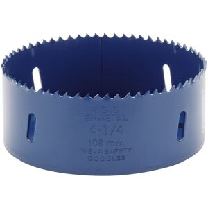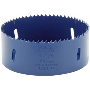 Description This high-speed bi-metal holesaw is designed for precise and clean cutting of holes in metals, plastics, and wood up to 35mm (1.3/8”) deep. It features a hardened M3 steel cutting edge welded to a durable alloy steel body, ensuring long-lasting performance and reducing the risk of shattering. Suitable for heavy-duty applications, it provides accurate and efficient cuts in stubborn materials. Technical Specifications Diameter: 108mm Material: Bi-metal (M3 steel cutting edge and alloy steel body) Maximum cutting depth: 35mm (1.3/8”) Construction: Variable pitch for smooth cutting Features: Four side slots for slug removal, female threaded spindle for arbor attachment Compatibility and Accessories Compatible with standard 9.5mm (3/8”) arbors Requires a compatible arbor for attachment to power drills Recommended lubricant for metal cutting: Stock No. 76109 - Metal Cutting Lubricant, 400ml Installation Attach the holesaw to a compatible arbor with a 9.5mm spindle Secure the