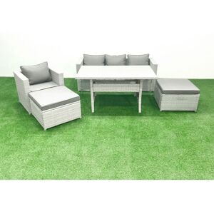 Set Dimensions: 2 x Sofa with double armrest: 177W x 65D x 66H cm 1 x Chair : 74W x 65D x 66H cm 1 x Side coffee table 65L x 65W x 66H cm 1 x Coffee table: 65L x 65W x 34H cm >> Light grey mixed rattan with dark grey fabric .Color may Vary due to light or monitor .we are unable to return the item due to this problem .Please Consult Before Purchase if you have requirement on color saturation Fimous Light Grey Rattan Garden Outdoor Lounge Sofa Set Chair Sofa Side Table