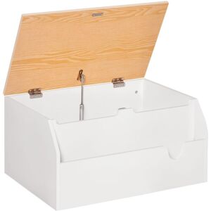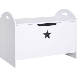 Made from MDF and crafted into a spacious 46.5 x 62cm design, this fresh white storage box is the perfect addition to your child's room to store all their toys, books and odd bits and bobs. Sturdy in construction to suit children of all ages, it features a handle-style groove and safety hinge to lift the lid up easily and keep it in place, two handles for easy carrying and an elevated base for extra protection to the box. Finished with a cut-out star on the front for extra character. HOMCOM Wooden Kids Toy Box Storage Organizer Bedroom Chest Bench White
